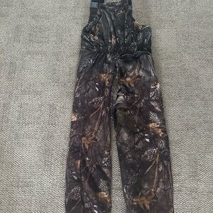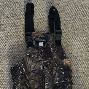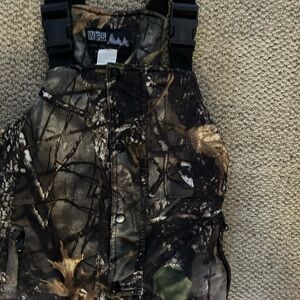 Camouflage bib overalls. Kids hunting pants. WFS Element Gear. 25 inch inseam. Adjustable straps.