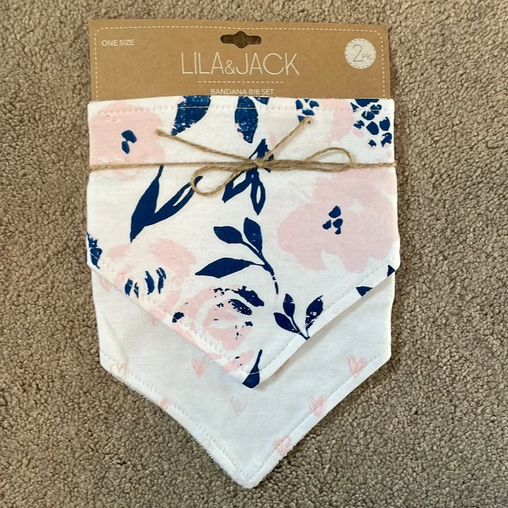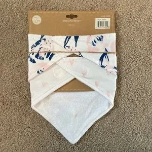 One floral print with pink and blue on white, the other pink heart print on white. Brand new.