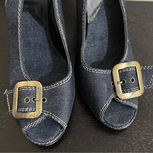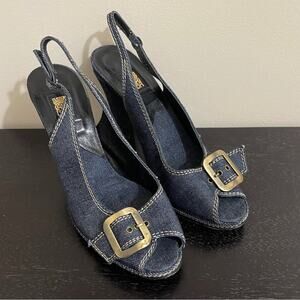 Biba Denim Peep Toe Sling Back Buckle Heels Blue Size 8/38