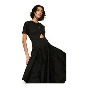 Bibhu Mohapatra Collective Cutout Fringe Dress in Black Cotton Poplin Size 6