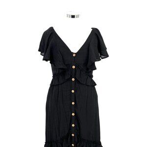 Bibi Black Ruffle Boho Western Maxi Dress Flutter Sleeves Black Size Small