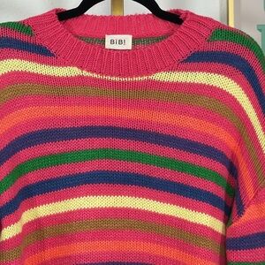 Bibi Chunky Knit Colorful Striped Sweater