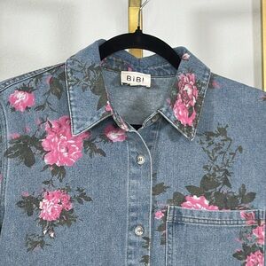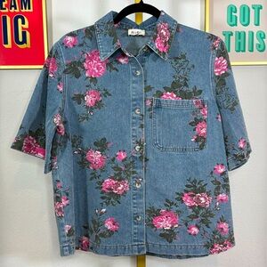 Stylish denim shirt with a vibrant floral design. Perfect for casual outings.