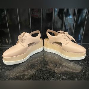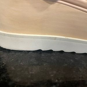 Platform Nude wedges with peeps. Size says 38. I would say it fits more like a 7-7.5.Some minor wear as shown in pictures.