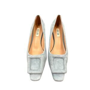 Bibi Lou Poznan Buckle Pump Kitten Heel Square Toe Designer Elegant Blue Suede 6