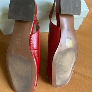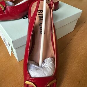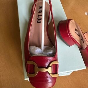 Bibi Lou red patent leather sling back with brushed gold buckle. EU 38.