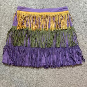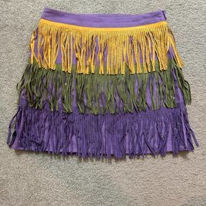 fringe skirt, Mardi Gras, sparkle, metallic accents, vibrant colors, purple green gold, festive, party wear, layered fringe, NWT