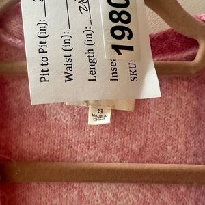 SEO Tags: bibi cardigan sweater polyester acrylic nylon spandex pink white heart print open front pockets size s 1980