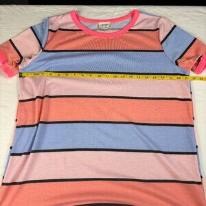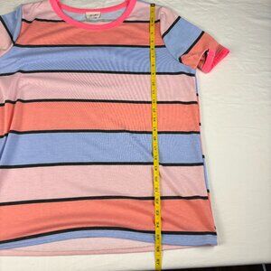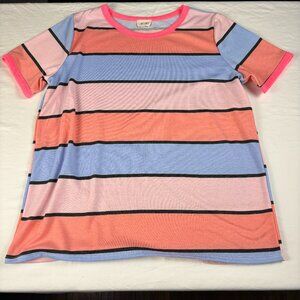 The bold stripes and bright colors make this tee a standout piece in your wardrobe. Its comfortable fit and soft fabric will make it a go-to favorite for casual outings.