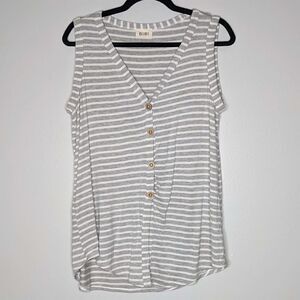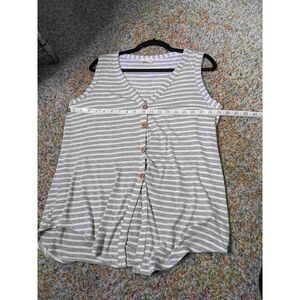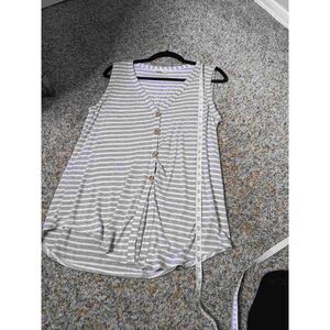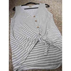 Bibi Knotted Front Gray & White Striped Tank Top Small. Excellent gently used condition. Measurements in photos. Please let me know if you have any questions. :)