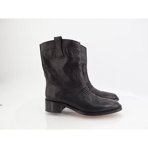 Bibi Lou Briana Western Boot Black Leather Size 37 7 Pull On Cowboy Ankle