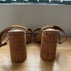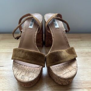 suede, solid color, no appliqués, leather lining, buckle, round toe, square heel, cork heel, rubber sole, contains non-textile parts of animal origin