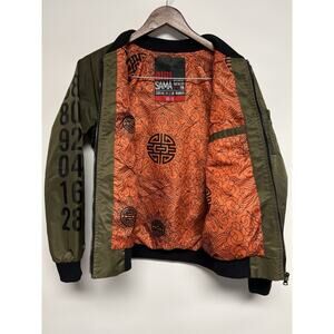 Bibisama Zodiac Monkey Olive Green Bomber Jacket XS-S Embroidered Streetwear.