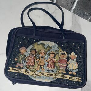 Bible Carrying Case Zipped Embroidered Blue "Praise the Lord All You Nations"