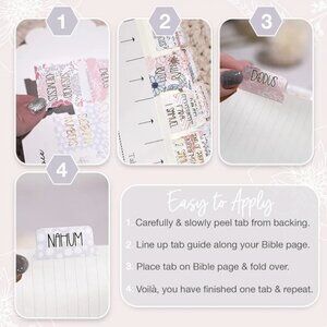 Idyllic Grace - Bible Tabs, Gold Foil Lettering, Bible Study Tool, Bible Journaling, Old and New Testament, Christian, Catholic, Apocrypha, Index Labels, 90 Tabs, Glossy Laminated, Durable.