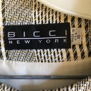 Bicci New York Vintage Blazer in black and white pattern with subtle yellow weave throughout. Cool zipper tassel.