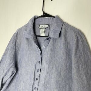 Bice Womens Shirt Linen Raw Weave XL Classic Button Front Coastal Classic Blue