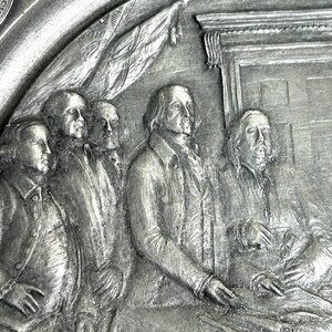 Celebrate American history with this pewter plate featuring the 1776 signing of the Declaration of Independence. A collectible piece for history enthusiasts.