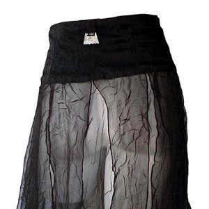 Deadstock Biche de bere black sheer crinkled paneled skirt with silver details