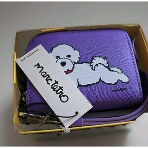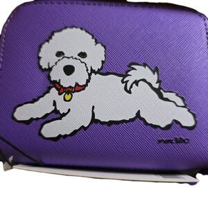 The Marc Tetro Bichon Frise White Puppy Dog Purple Wristlet Zip Around Wallet. Made from faux leather, with detachable wrist strap. Credit cards and cash slots/sections. Approx 5" in length and 4" in wide. Perfect gift! Nonsmoking Seller. Ready for immediate shipment.