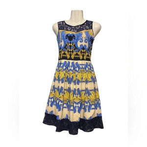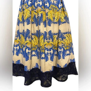 Bicotone Baroque Print Lace Detail Fit and Flare Dress