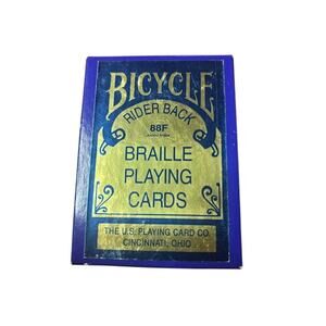 Bicycle Rider Back 88F Braille Playing Cards Complete Deck Original Blue Box In EUC. Some tape on bottom of box, but cards are pristine. I also have a red box set listed. Will discount for buying both.