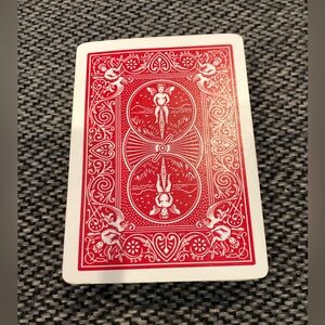 Bicycle Rider Back Playing Cards, gently used, all cards are accounted for, the box shows gentle wear, box states poker 808, air cushion finish. Good used condition!