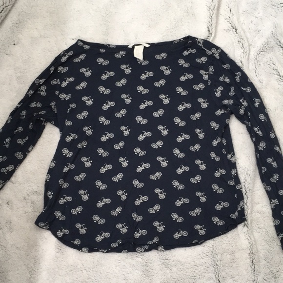 Navy blue long sleeve tee from H&M with cream bicycles