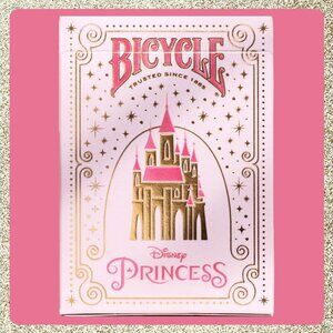 The Disney Princess franchise dreams, creates, and celebrates the most magical adventures, each woven around the relatable, empowered heroine who delights everyone and inspires people to realize their full potential. Bicycle Disney Princess playing cards showcase the iconic Disney castle on the front, with gold and holographic foil accents on the tuck case. The card faces feature court cards with artwork of 12 different Disney princesses.