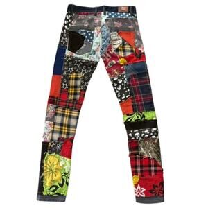 New with tags BiePa 1971 patchwork denim pants, size 28. Colorful multi-fabric design with plaid, floral, bandana, and geometric prints stitched together in a slim straight-leg fit. A bold statement piece perfect for festivals, concerts, Burning Man, or Y2K-inspired streetwear. These jeans are eye-catching and versatile, pairing well with crop tops, leather jackets, or oversized knits. Condition: brand new, unworn with tags.