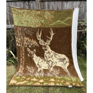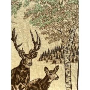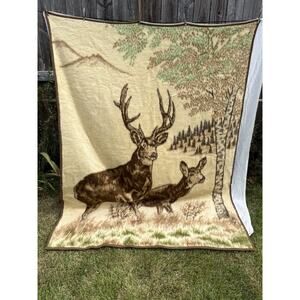 Vintage Biederlack reversible acrylic and cotton blend blanket in a woodland deer design. It is approx 59 inches wide x 78 inches in length. Overall clean, bright and odor free. Hang tag is bright and unfaded. See photos.