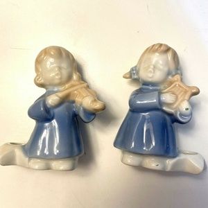 Biedermann Vintage Set of Two (2) Mini Candle Stick Holders Blue Music Children