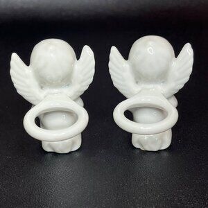 Biedermann White Porcelain Praying Angel Figurine Candle Holders. Set of 2. Made in Japan. Very nice condition, with no chips or cracks.
