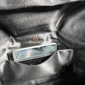 Bienen Davis VTG Black Velvet & Gold Tone Metal Trim Clutch W/ Mirror & Pouch