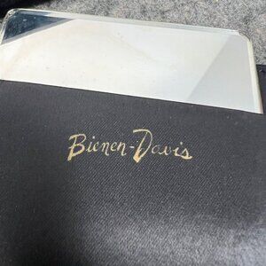 A timeless piece from Bienen-Davis, this vintage black velvet clutch features elegant gold tone accents and includes a mirror and pouch, perfect for evening elegance.