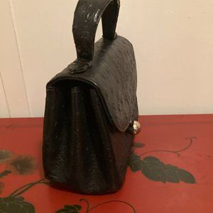 Bienen Davis Vintage black handle ostrich leather bag