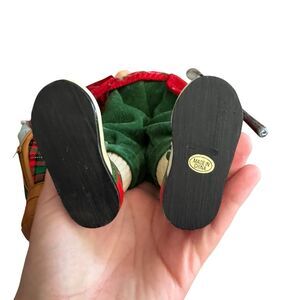The product is a 17.25" figurine of Joyous Golf Golfer Santa, designed to bring holiday cheer during the Christmas season. The figure features a festive Argyle pattern in multicolor, made from a combination of composite, metal, and fabric materials. With a focus on the subject of Santa, this figurine is a unique and eye-catching addition to any holiday decor collection. Perfect for collectors or anyone looking to add a touch of Christmas spirit to their home, this figure is sure to be a conversation starter and a source of joy. Santa is missing gold ball he was holding. Selling as it.
