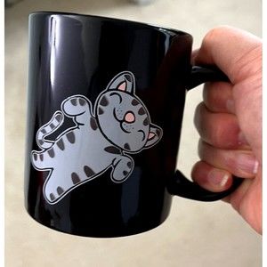 Preowned Coffee Mug featuring Big Bang Theory Logo on one side and Schrodinger's kitty cat on the other side