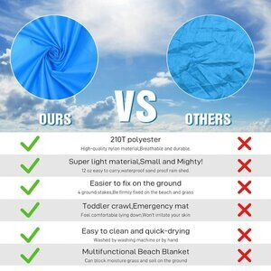 🛒 Complete Beach Picnic Set: Includes 1 beach blanket, 4 ground stakes, and 1 carabiner for added stability on windy days. Enjoy the beach and sunshine with family, kids, and friends, backed by our dedicated customer service and return policy.