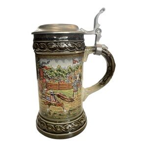 RARE Vintage Original Gerzit Gerz German Beer Stein, pewter lid, ENGLISH JOUSTERS,