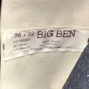 Big Ben Mens Denim Bib Overalls 38x32 Blue 100% Cotton Straight Leg Retro Y2K