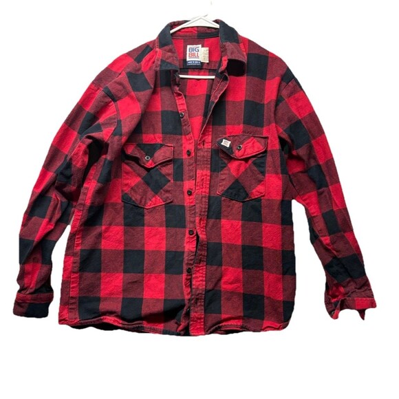 Big Bill Flannel Shirt Mens Large Red Buffalo Plaid Grunge Cowboy Made in USA