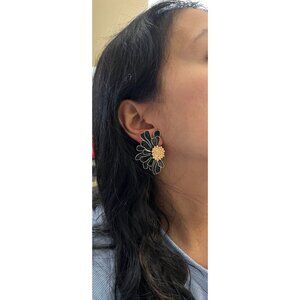 Big Black flower earrings ,black Flower stud earring gold black earrings large