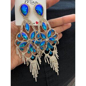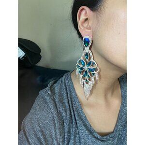 Big Blue and green earring iridescent chandelier rhinestone earrings crystal