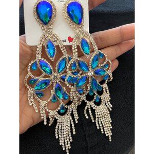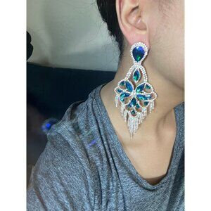 Huge blue rhinestone earrings
