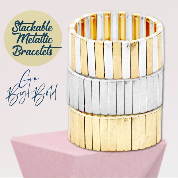 Brand New Big and Bold Stretch Bracelets in Metallic Silver and Gold Combinations