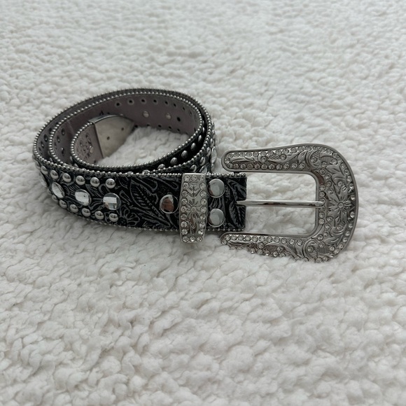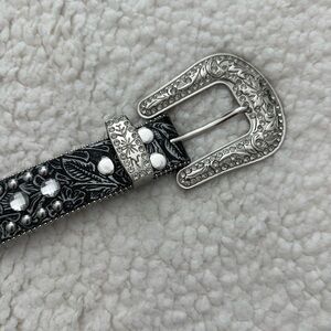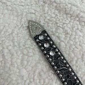 Embossed rhinestone leather 1 1/2" belt