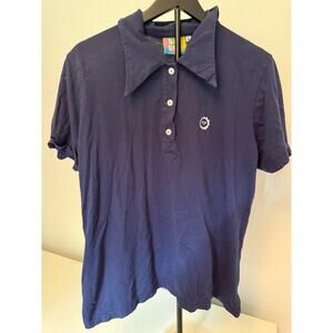 Big Bud Press Men's Wide Collar Cotton Polo Shirt Navy Blue Large