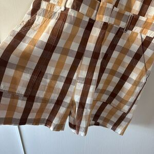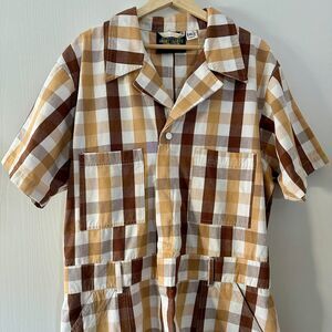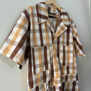 Big Bud Press Romper Jumpsuit Tan Brown Gingham Short Sleeve Shortalls