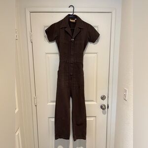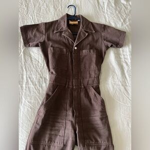 Big Bud Press XXS short sleeved jumpsuit in espresso brown. Got in a sample sale and unfortunately no longer fits. No known defects/issues.